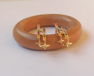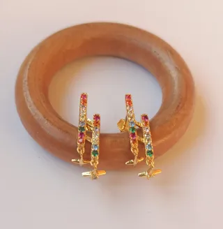 Aros Gruesos Plata baño Oro Zirconias Colores