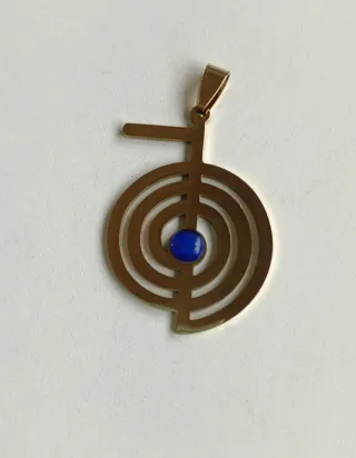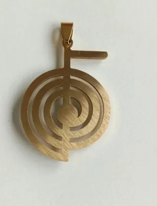 Colgante dorado de acero inoxidable.Forma de Cho Ku Rei que es un símbolo energético del Reiki,que comunicación con el Universo aumentando y mejorando la energía interior para hallar la Paz y el bienestar que se necesita para avanzar en la vida diaria .Medidas del colgante:40mm*30mm.Completamente nuevo,sin estrenar. #ColganteChoKuRei #AceroInoxidable #SímboloReiki #EnergíaInterior #PazYBienestar #ColganteDorado #AccesoriosEsotéricos #Nuevo #SinEstrenar #Segundamano #JoyasConSignificado #AccesoriosÚnicos #Reiki #SimbolismoEnergético