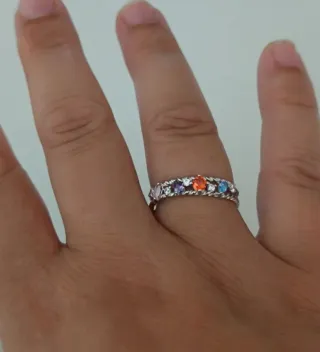 Alianza doble de plata.Con circonitas talladas de colores engastas entre circonitas cúbicas transparentes.De orfebrería.Ideal para ocasiones especiales o todos los días.Muy combinable,da un toque trendy a cualquier look.Nuevo,sin estrenar.Talla: 57 mm de perímetro y 18,1mm de diámetro. #anillo #alianza #entrelazada #bandas #anilloplata #anilloentrelazado #cuerda #circonia #circonitas #multicolor #joyasplata #joyeria #orfebreria #plata #nuevo #diferente #regalo #segundamano #sinestrenar