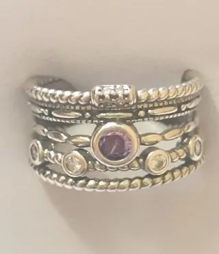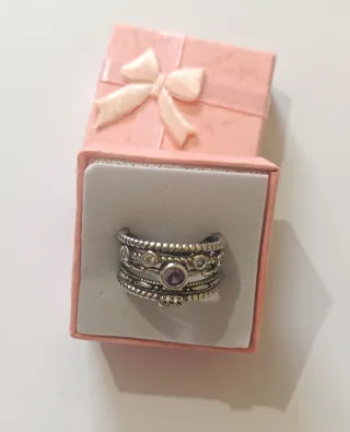 ¡Precioso anillo triple estilo boho-vintage! Plata de ley 925 ,contraste S925 grabado ( puede verse en las fotos. Amatista central lila + circonitas blancas engastadas. Diseño de 3 aros entrelazados con detalles envejecidos. Talla ajustable. Nuevo, sin estrenar, con cajita regalo rosa incluida.. Perfecto para looks románticos, regalo de Navidad/comunión o simplemente porque es una joyita única. #anilloplata #plata925 #amatista #anillotriple #boho #joyeriaplata #nuevo #regaloNavidad