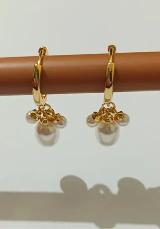 Pendientes Aro Perlas Plata 925 Baño Oro