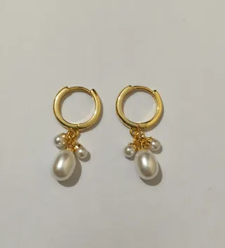 ¡Los pendientes más dulces y elegantes! Aros finos con colgantes de perlas (3 pequeñas + 1 grande). Plata 925 bañada en oro (contraste S925 grabado). Medidas: 2,6 cm largo × 1 cm ancho. Cierre de clic súper cómodo. Nuebos,sin estrenar. Ideales para looks diarios, boho o regalo de Navidad brutal. ¡Quedan increíbles puestos! ¡Precio imbatible!🐚✨ #arosdorados #pendientesperlas #platabañooro #arosconperlas #joyeriaplata #nuevo #regaloNavidad