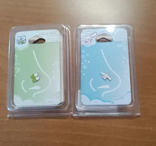 Lote de 2 piercings para nariz de la marca Sanrio.Completamente nuevos,en sus paquetes originales, sin abrir y con etiquetas. - Diseño adorable con motivos de personajes Sanrio:Keroppi y Cinnamoroll. - Material: Acero quirúrgico de alta calidad. - Calibre: 20G (0.8mm). - Tipo de barra: L-Bend para un ajuste. Cómodo y seguro. Incluye pendientes de Keroppi y Cinnamoroll en forma de L. Ideal para fans de Sanrio y sus personajes adorables,quienes buscan un accesorio único y divertido para su nariz y coleccionistas de joyas y accesorios de Sanrio. #Sanrio #PiercingsParaNariz #HelloKitty
