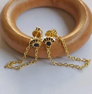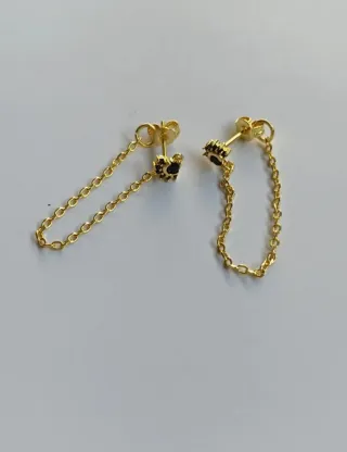 Originales pendientes de plata bañados en oro de 18kt(plata vermeil).Con motivo de piedras negras y cadena que cuelga en forma de U al ir enganchada también a la tuerca.Cierre de tuerca.De orfebrería.Ideales para outfits de todos los días u ocasiones más especiales.Muy combinables,dan un toque trendy a cualquier look.Nuevos,sin estrenar. #Pendientes #cadena #piedras #piedranegra #pendientesplata #pendientesoro #pendientesvermeil #joyeria #orfebreria #plata #oro #vermeil #nuevo #diferente #regalo #barato #calidad #tendencia #nuevo #segundamano #sinestrenar