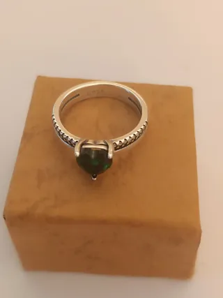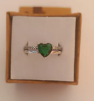 Alianza doble de plata con una gran circonita verde tallada en forma de corazón.La alianza superior está decorada con circonitas cúbicas transparentes.De orfebrería.Con sello S925 que garantiza que es plata.Ideal para ocasiones especiales o todos los días.Muy combinable,da un toque romántico a cualquier look.Nuevo,sin estrenar.Talla: 57 mm de perímetro y 18,1mm de diámetro. #anillo #alianza #anilloplata #corazón #joyasplata #joyeria #orfebreria #plata #nuevo #diferente #regalo #segundamano #sinestrenar