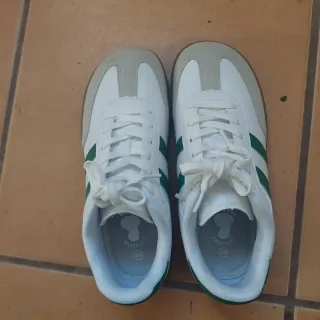 Zapatillas deportivas barefoot, usadas una sola vez. - Diseño en blanco y verde. - Talla 38.