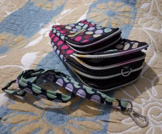 Práctico bolsito deportivo con un diseño alegre y llamativo. - Estampado de lunares en varios colores. - Correa desmontable. - Tres compartimentos. -Goma en la trasera para ponerlo en el brazo. NO SEUR