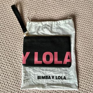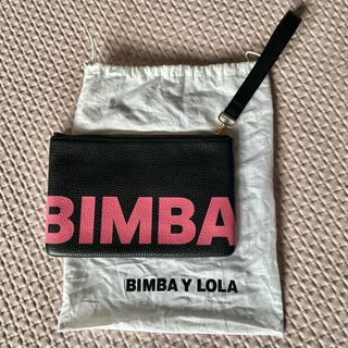 Bolso de mano Bimba y Lola. A ESTRENAR. Medidas: 19,5 cm de ancho x 15,5 cm de alto. - Elaborado en piel suave de máxima calidad. - Diseño en color negro con letras en rosa.