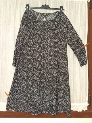 Vestido de corte A con un bonito estampado floral. Ideal para cualquier ocasión. - Manga larga. - Cuello redondo con abertura trasera. - Largo hasta la rodilla, sin llegar a cubrirla. -Ligeramente elástico. NO SEUR