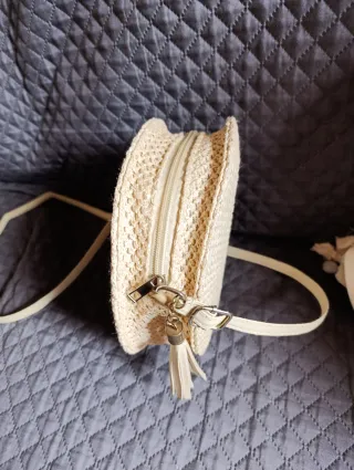 Bolso redondo de tejido en color beige, con un diseño moderno y un detalle de flecos. - Material tejido. - Forma redonda. - Adorno de flecos. Está disponible en Ogijares CP 18151