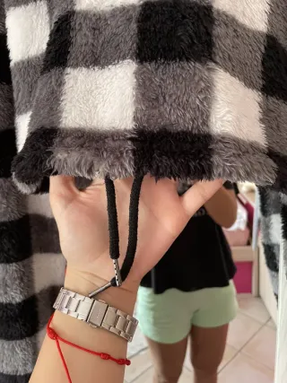 Está en muy buen estado Como nueva Es de pelito muy calentita Es Corta de cuadrados blancos, negros y grises Tiene un cordón en la cintura para adaptarlo Talla S #shein #sheinfashion #sheinside #sheinfemme #sudaderamujer #sudaderamujershein #sudaderaconcapucha #sudaderapelito #sudaderacuadros #sudaderacuadrosblancosynegros