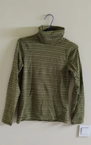 Pack de tres camisetas de manga larga con cuello alto. Muy poco uso. Conservadas perfectamente. - La camiseta verde es térmica, las otras 2 no. - Plancho antes de enviar. - La camiseta roja puede presentar pequeñas manchas en las axilas. Por lo demás, está perfecta.