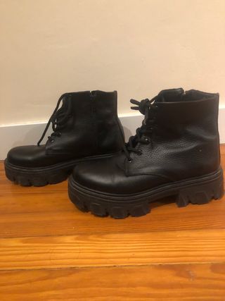 Botas de piel de la marca Oggi, fabricadas en Argentina. Un diseño versátil y moderno. - Material exterior: Piel 100% vacuna. - Cierre con cordones y cremallera lateral. - Suela gruesa y resistente. - Diseño tipo botín.