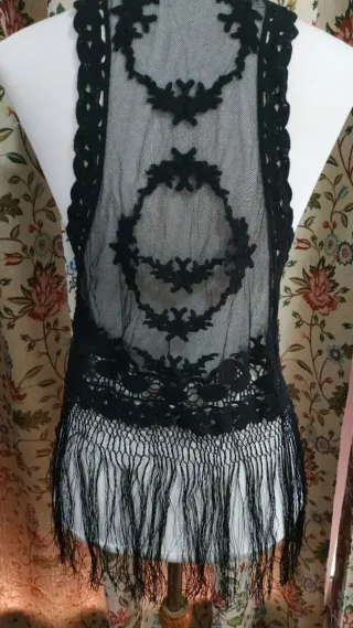 Chaleco negro flecos hecho a mano