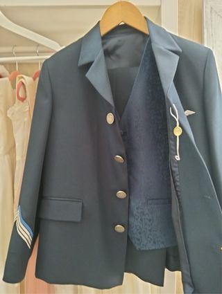 Traje de comunión con un diseño de almirante. - Chaqueta azul marino. - Insignia de aviación en el pecho. - Galones en las mangas.