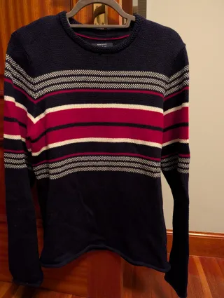 Jersey de punto con diseño de rayas horizontales en varios colores. - Cuello redondo. - Manga larga. - Tejido de punto. - Diseño de rayas.