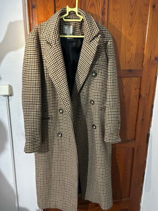 Abrigo largo jaspeado negro y gris talla M/L
