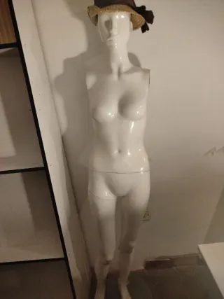 Maniquí de mujer de cuerpo entero, ideal para escaparates o exhibiciones. - Tamaño real. - Diseño neutro. Algunos signos de desgaste. Desmontable, 5 piezas ➕ la base.
