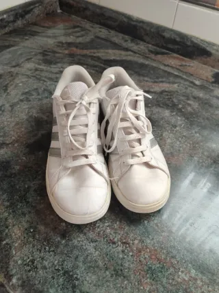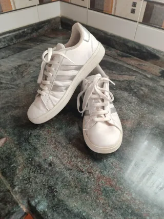 Zapatillas Adidas Blancas y Plateadas