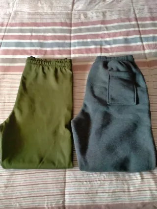 Conjunto de dos pantalones de chándal para hombre. - Un pantalón de color verde. - Un pantalón de color gris.