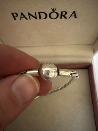 Elegante pulsera de la marca Pandora, con un diseño trenzado y cierre de seguridad. - Diseño trenzado de dos hilos. - Cierre tipo bola con logo grabado.