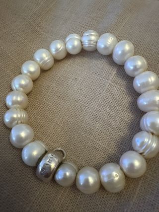Elegante pulsera de piedras de río con detalles en plata. - Diseño de la marca Thomas Sabo. - Combina piedras blancas y elementos plateados.