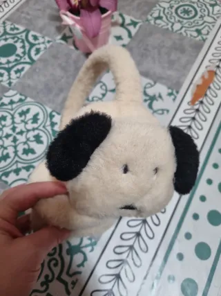 Orejeras de peluche con diseño de perro. - Suaves y calentitas. - Orejas negras. - Banda para la cabeza.