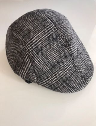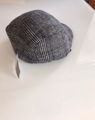 Gorra clásica con un diseño a cuadros. - Estilo flat cap o boina. - Incorpora orejeras para mayor protección. - Patrón de cuadros en tonos grises y negros. Nunca usada, con etiqueta. Talla 60