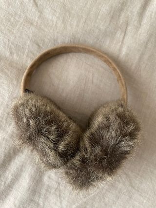 Orejeras de antelina color camel, con pelo sintético suave, en gris. Su diseño es moderno, cálido y combinable. Banda para la cabeza cómoda. Compradas en NYC. Marca: D&Y (No D&M) Usadas un par de veces. Estado como nuevas. Talla: adaptable desde cabeza niña 8-10 años hasta mujer adulta.