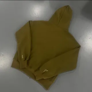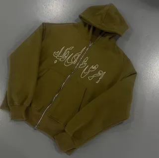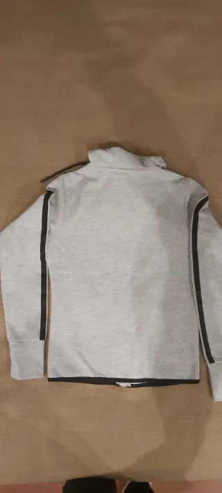 Sudadera con cremallera completa y capucha, con un diseño moderno y un color verde oliva. - Sin estrenar. - Cierre de cremallera plateada. - Bolsillos frontales. - Puños y cintura elásticos.