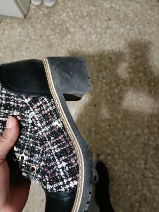 Botas de mujer con un diseño moderno y llamativo. - Acabado en tweed multicolor. - Punta y detalles en piel sintética negra. - Cierre de cordones y cremallera lateral.