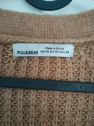 Rebeca de punto grueso en tono beige/marrón. Es una prenda cómoda y versátil. - Diseño de punto grueso. - Cierre de botones. - Cuello en V.