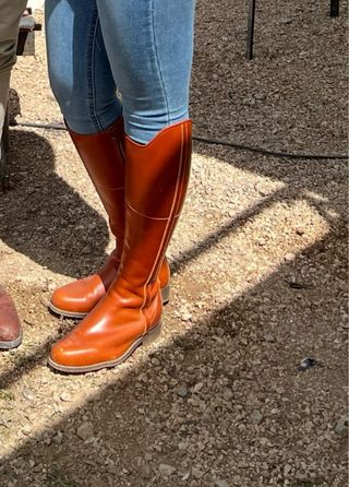 Botas de montar de piel en un bonito tono avellana. Perfectas para equitación o uso diario. Puesta en muy pocas ocasiones, las botas estan como nuevas. Son muy comodas. Son de Roberto Garrudo. Tiene añadidas una media suela (no se nota) para que no se gaste la suela original y no resbalen y son de ancho especial. Las vendo porque me quedan pequeñas, su precio original es de 230€. Preguntad las medidas sin compromiso. - Diseño alto hasta la rodilla. - Detalle de costuras decorativas.