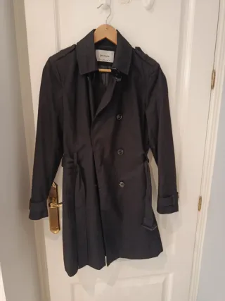 Gabardina clásica de Stradivarius en color negro. Poco uso en perfecto estado. - Cinturón para ajustar a la cintura. - Cuello con solapas.