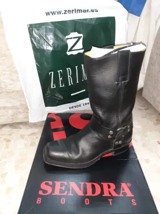 Botas moteras de cuero negro de la marca Sendra. - Diseño clásico de motero. - Hebillas metálicas decorativas. - Caña alta.