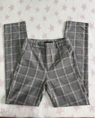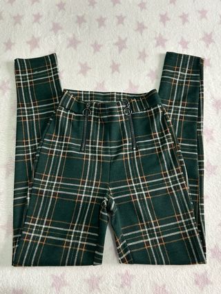 Usado 1 vez, los pantalones están en perfecto estado, aunque tiene unos defectos que los podéis ver en las fotos son de tiro medio alto son muy cómodos y muy fáciles de poner, es pitillo o cigarrete y tiene un estilo clasico