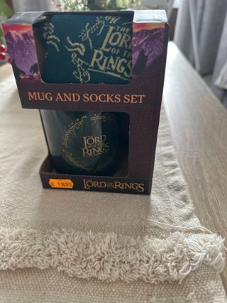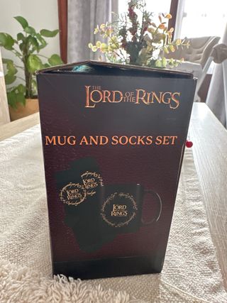 Conjunto de taza y calcetines con temática de The Lord of the Rings. - Taza de color negro con diseño. - Calcetines de color verde con estampado. - Talla única.