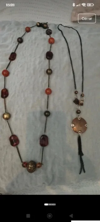 Conjunto de dos collares con cuentas de diferentes formas y tamaños.