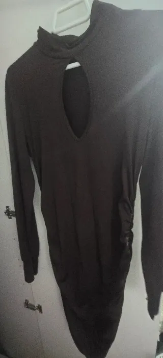 Vestido de la marca SHEIN con un diseño moderno y elegante. - Color marrón. - Talla M (EU 38, US 6). - Escote con abertura. Fruncido en la parte de abajo - Tejido cómodo.
