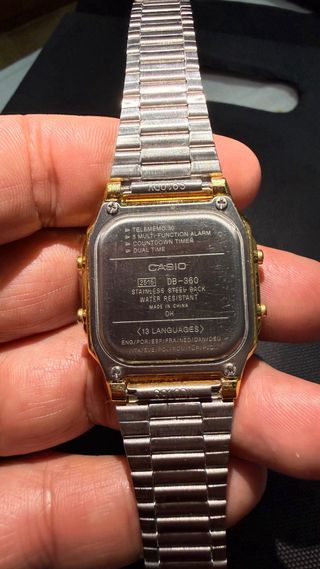Reloj Casio modelo DB-360 con acabado dorado. - Diseño clásico y funcional. - Correa metálica ajustable. - Pantalla digital clara.