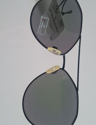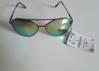Gafas de sol con un diseño moderno y lentes con efecto espejo. - Montura negra. - Lentes multicolor con reflejos. - Talla M. Perfecto estado nuevas con etiqueta. Marcado CE. Unisex