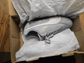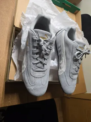 Zapatillas Puma Speedcat OG en color gris con detalles dorados. Nuevas en caja, sin uso. - Exterior de ante. - Raya característica de Puma en contraste. - Cierre de cordones.