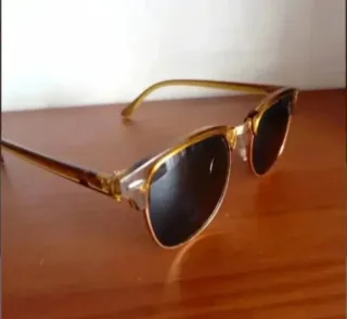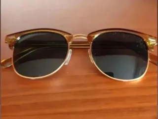 Gafas de sol con montura de estilo clubmaster. - Montura superior marrón. - Detalles metálicos dorados. - Lentes oscuras.