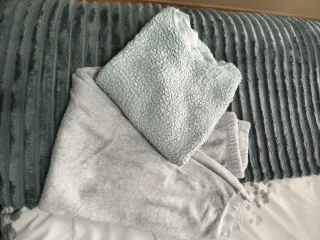Pijama unisex formado por jersey verde polar gordito y pantalón polar de color gris. Buen estado.