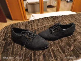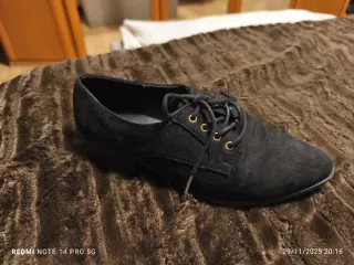 Zapatos planos de mujer con cordones. Tipo ante. Buen estado.