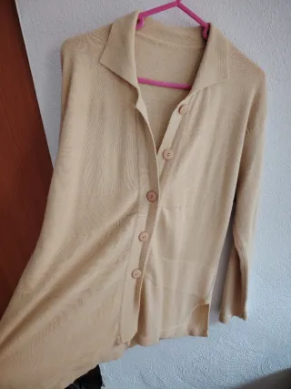 Rebeca de punto en color beige, ideal para cualquier ocasión. - Manga larga. - Cuello camisero. - Cierre de botones. - Diseño con líneas horizontales. -Equivale a talla grande XXL.