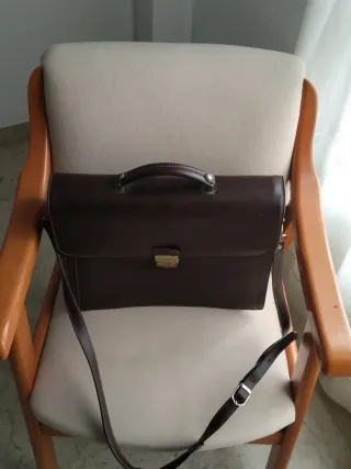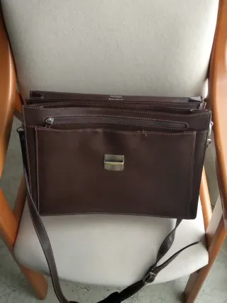 Elegante portafolios de cuero. - Material: Cuero genuino. - Cierre metálico dorado. - Diseño clásico y funcional.