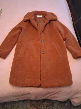 Precioso abrigo de pelito es súper abrigadito y calentito ,tiene un tacto super suabito ,es una talla S pero da perfectamente hasta una 44/46