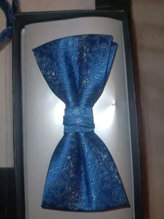 Corbata y pajarita azul estampado