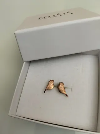 Pendientes de acero con un diseño encantador de pajaritos. - Acero de alta calidad. - Diseño de pajaritos. - Acabado en tonos dorados y marrones.